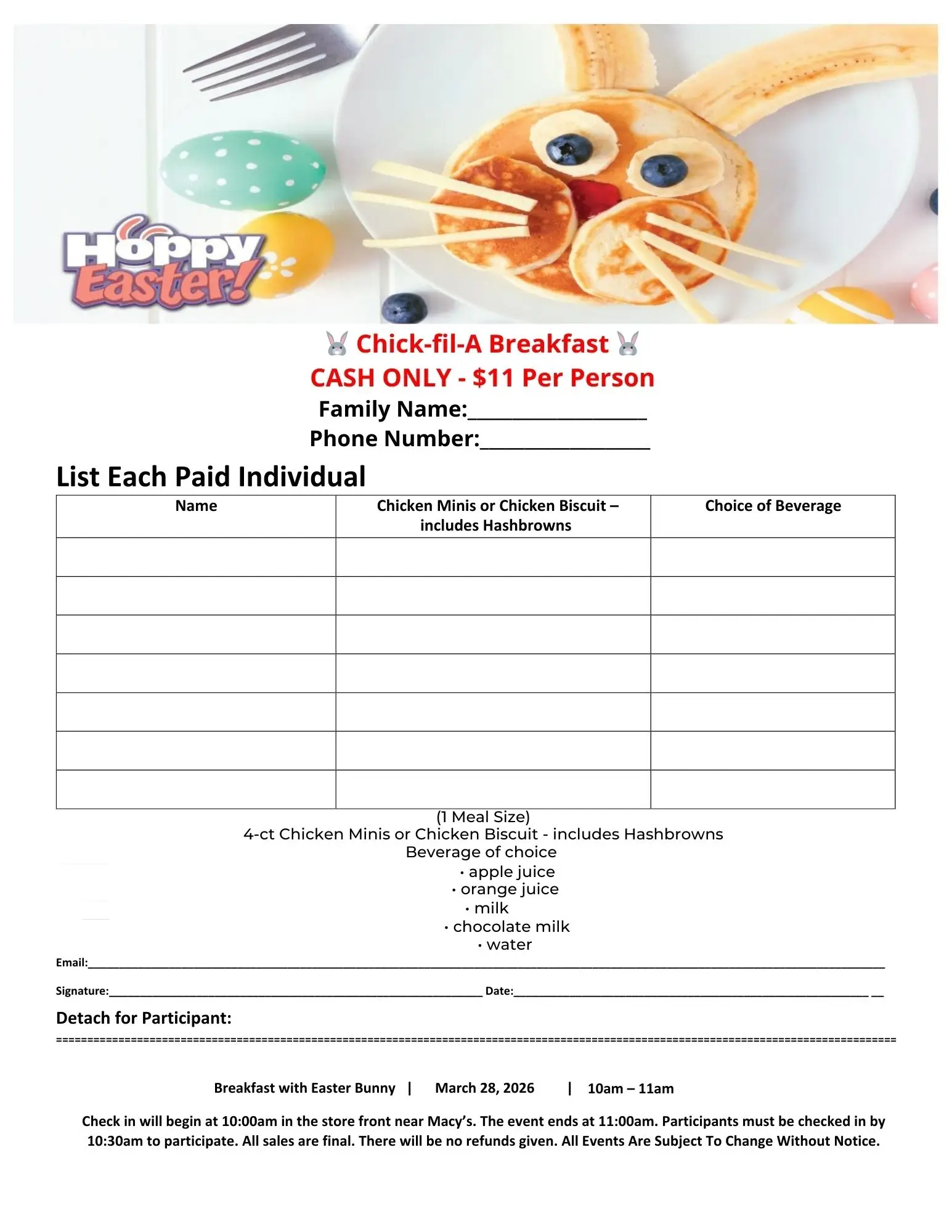 Join us for a delightful Breakfast with the Easter Bunny (near Macy’s)! Gather your family and hop on over for a morning packed with festive fun, sweet memories, and a delicious breakfast.